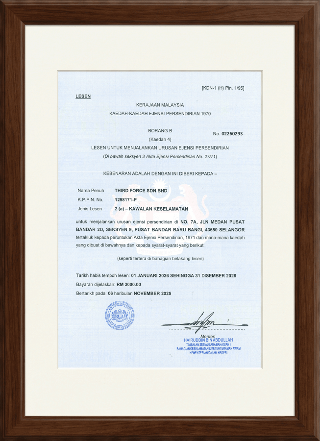 Third Force Sdn Bhd is a licensed Malaysian security provider delivering reliable guarding, integrated security systems, and fire protection solutions for residential, commercial, and industrial clients nationwide. Our approach blends elite training, disciplined operations, and modern technology to safeguard people, property, and business continuity.